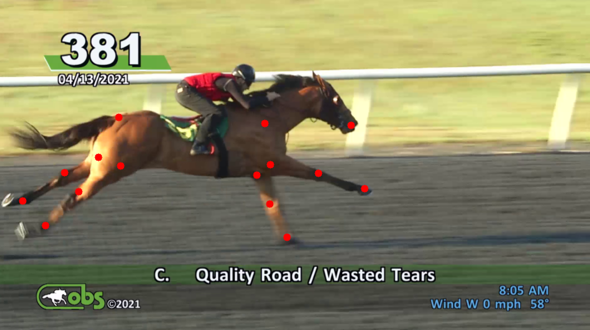 To demonstrate our current ability, let’s take a look at the work from 2021 Breeders’ Cup Juvenile winner, Corniche. For this example, we’ll focus strictly on the extraction of a relatively simple metric: stride angle.